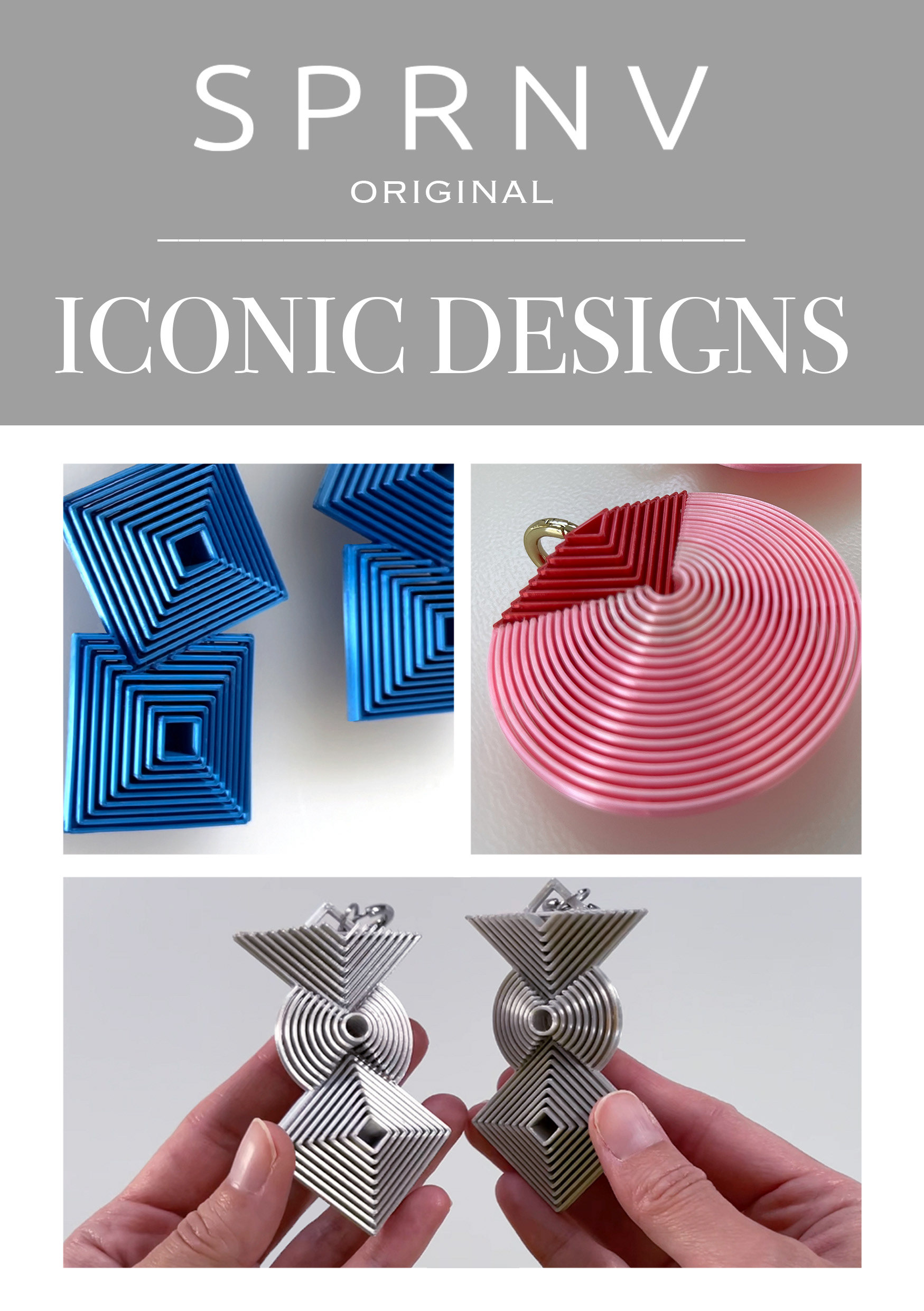 Each pair is crafted from 3D printed elements made of biodegradable plastic filament, then hand-assembled to form bold, dimensional structures. These statement earrings celebrate individuality and empowerment through bold, dimensional forms and shimmering metallic colors.